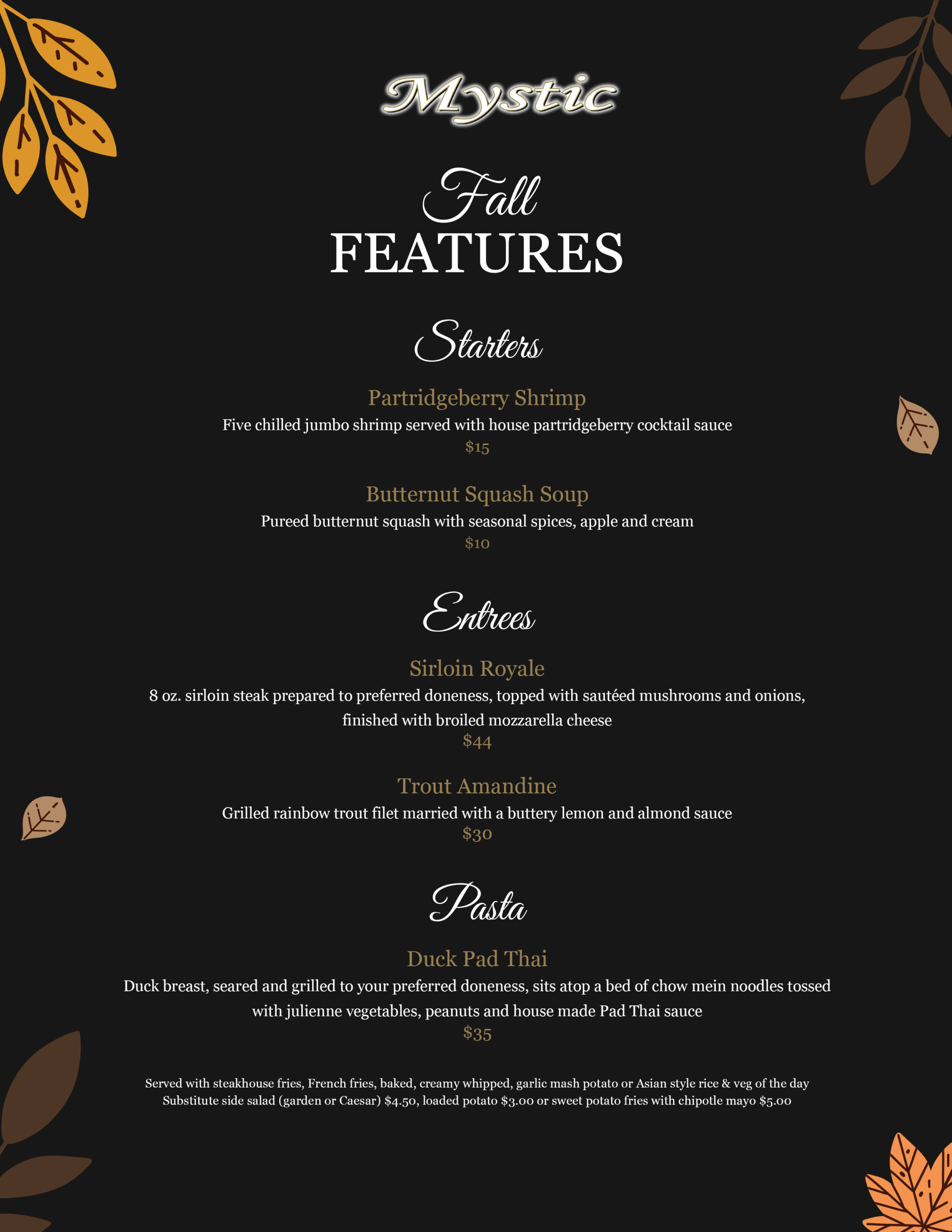 The Mystic Dining Room offers casual dining at its finest, with an excellent wine list to complement the experience. Set in a cozy and enchanting atmosphere, guests can enjoy a blend of local and international cuisine.
